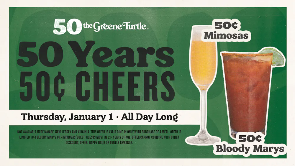 Not available in Delaware, New Jersey and Virginia. This offer is valid dine-in only with purchase of a meal. Offer is limited to 4 bloody mary's or 4 mimosas per guest. Must be 21+ years of age. Offer cannot combine with other discount, offer, happy hour or Turtle Rewards. See your location for details.